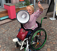 Wo auch immer ich unterwegs bin, verstehe ich mich als Inklusionsbotschafterin und Barrierencheckerin – aktuell im ZKM, dem Zentrum für Kunst und Medien Karlsruhe. Darüber hinaus baue ich derzeit ein Projekt mit dem Fokus auf Spielplätze für alle mit auf.